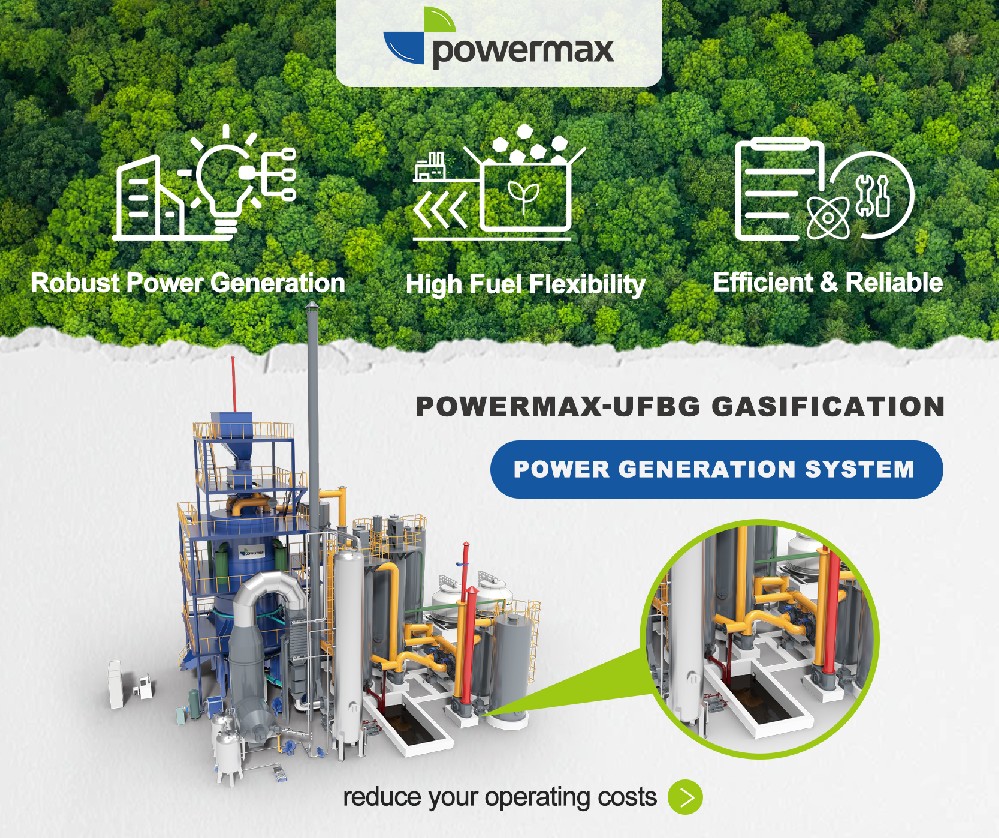 The Powermax-UFBG biomass gasification power system utilizes updraft fixed bed technology, with a si···